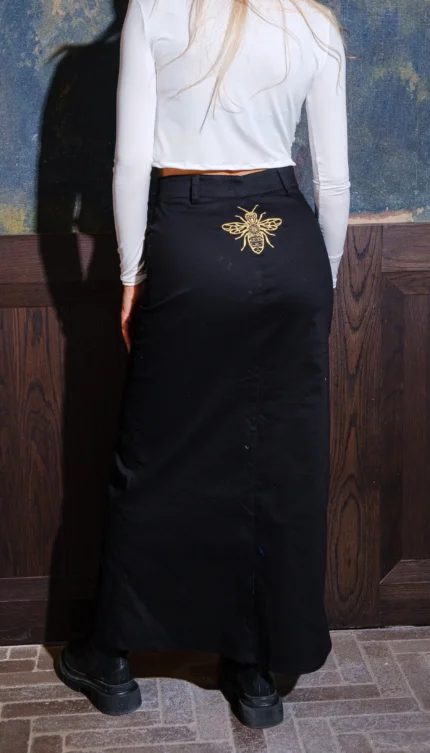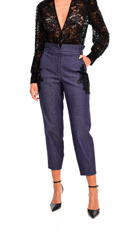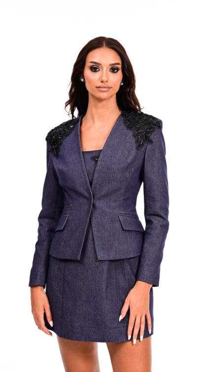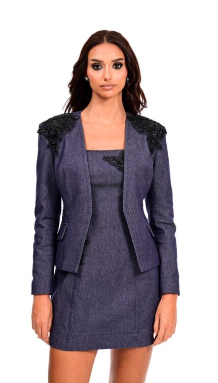 Φόρεμα τζην με τιράντα με μαύρο κέντημα