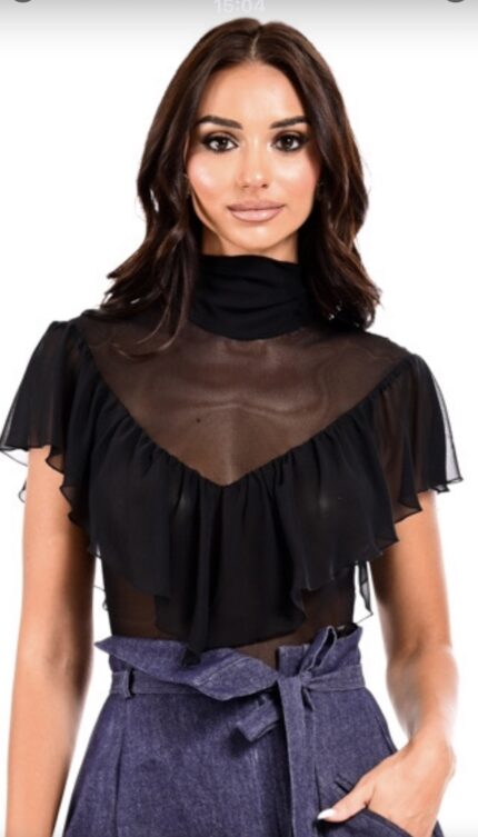 Μπλούζα μουσελίνα με βολάν δαντέλα