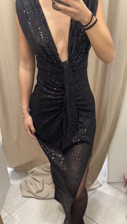 Mikaela Μίντι Μαύρο Φόρεμα με Παγιέτα και Ανοίγματα