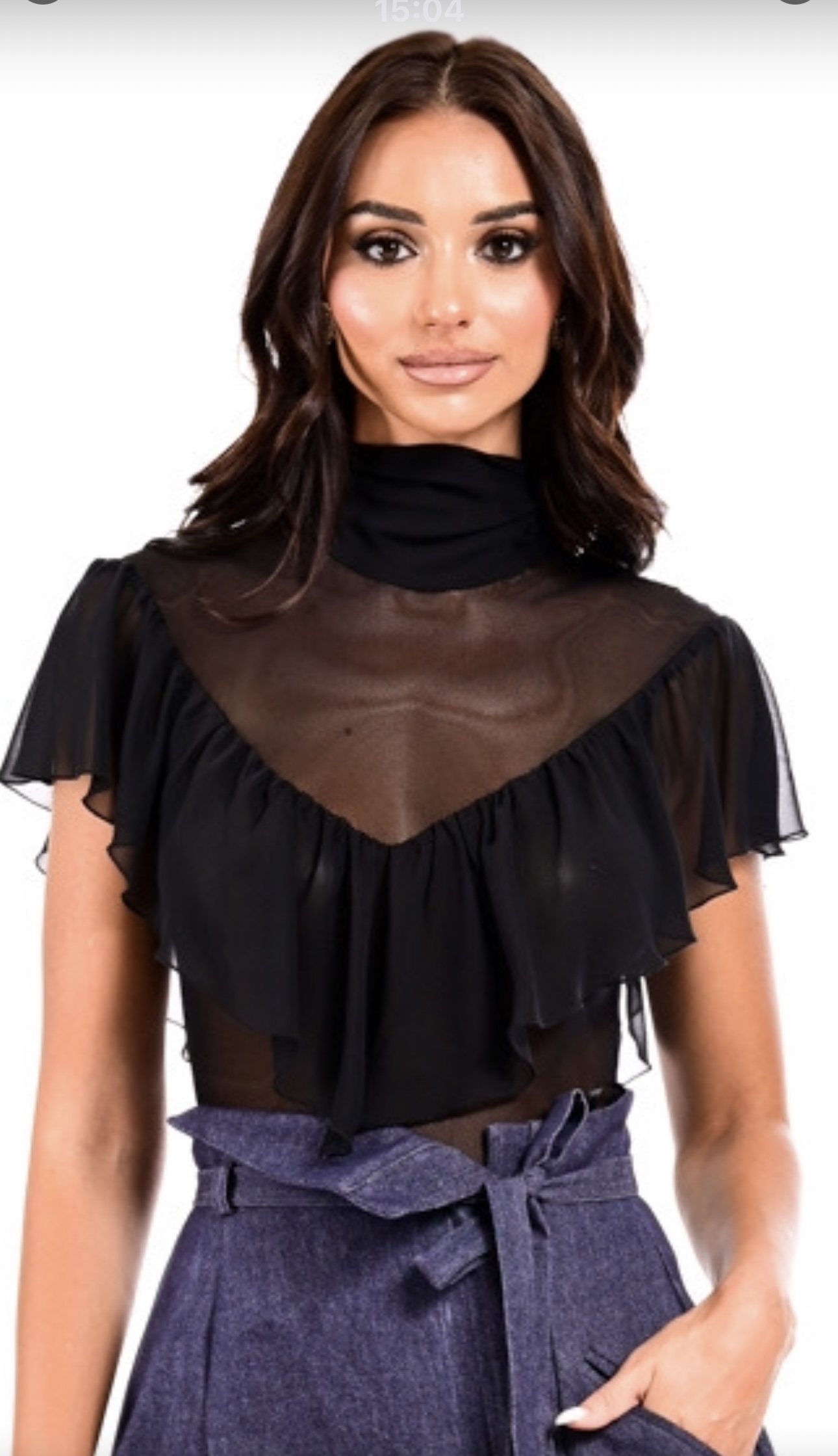 Μπλούζα μουσελίνα με βολάν δαντέλα