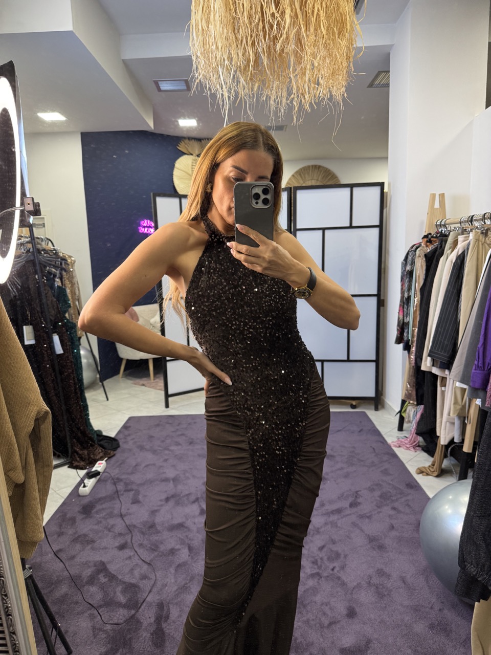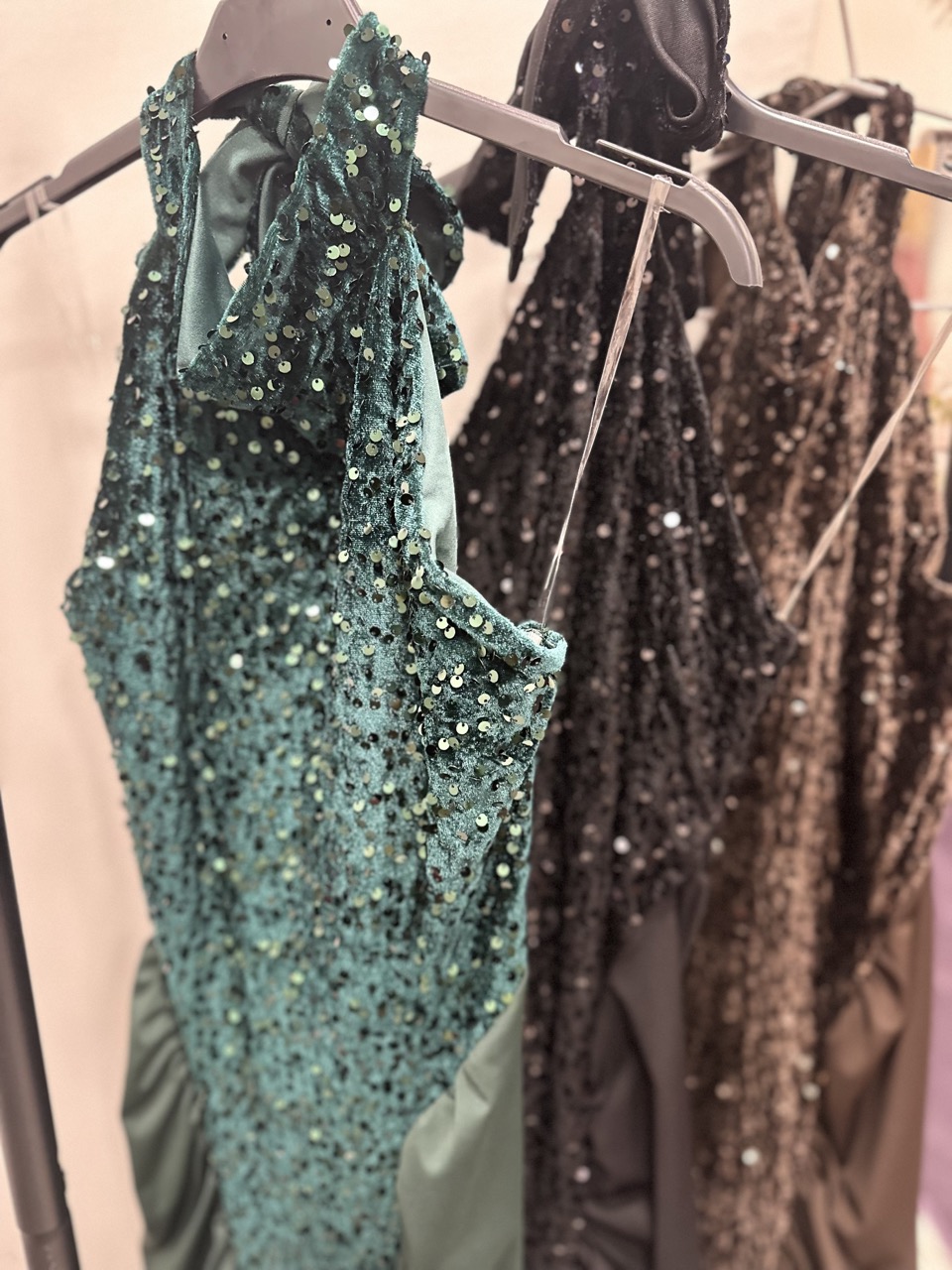 Φόρεμα μακρύ εξώπλατο με βελούδο και πούλια